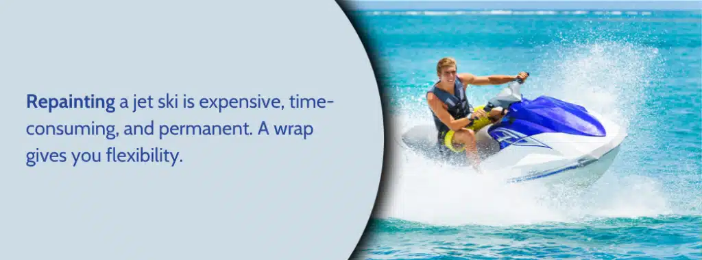 Whether you ride a Yamaha, Sea-Doo, or another brand, a custom jet ski wrap lets you stand out on the lake or at the marina while also extending the life of your jet ski’s finish.